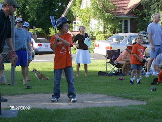 Chase plays really well considering he's never really played before. He's quite a slugger. He knocks it into the outfield almost every time. And I get to play catcher when his team is batting so it's a lot of fun.